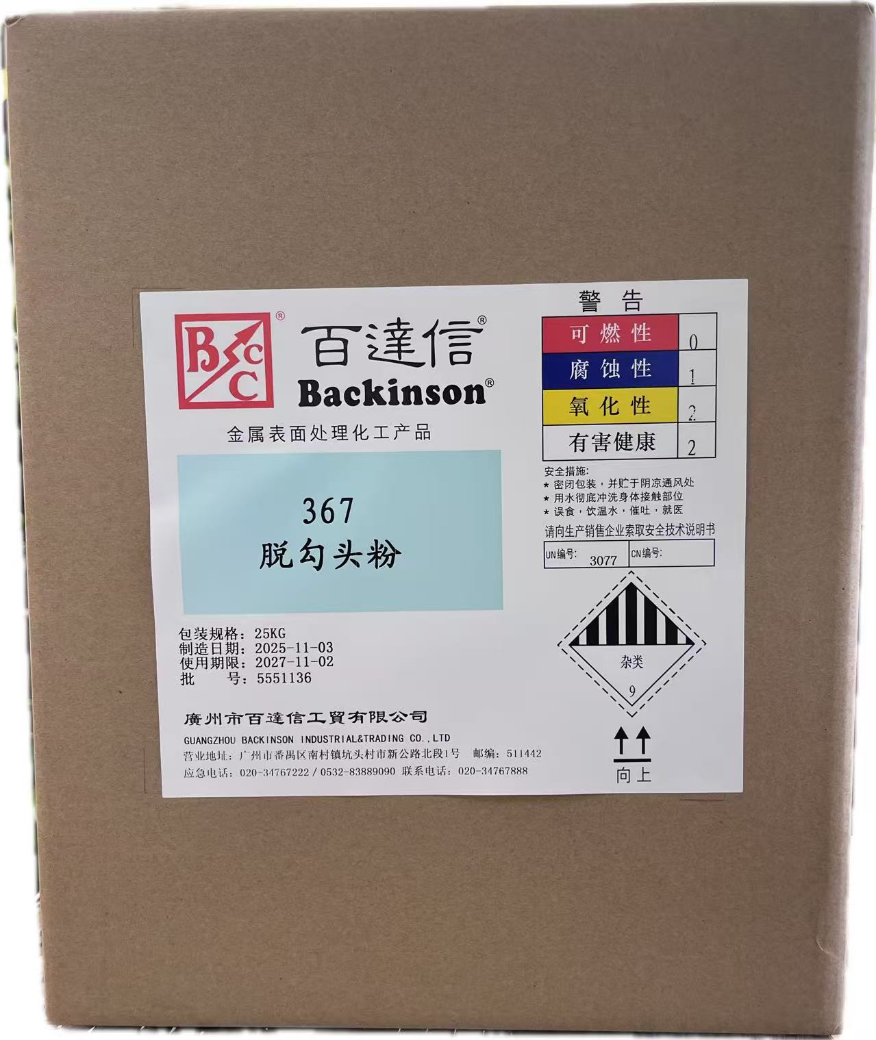 电镀挂具因循环使用多次而致钩头粗大,不能再用。用脱钩粉No.367 与硝酸混合而成之脱钩溶液,将挂具浸入,钩头上粗厚之电镀层可迅速地蚀去,而对于不锈钢基体之挂钩则丝毫无损。